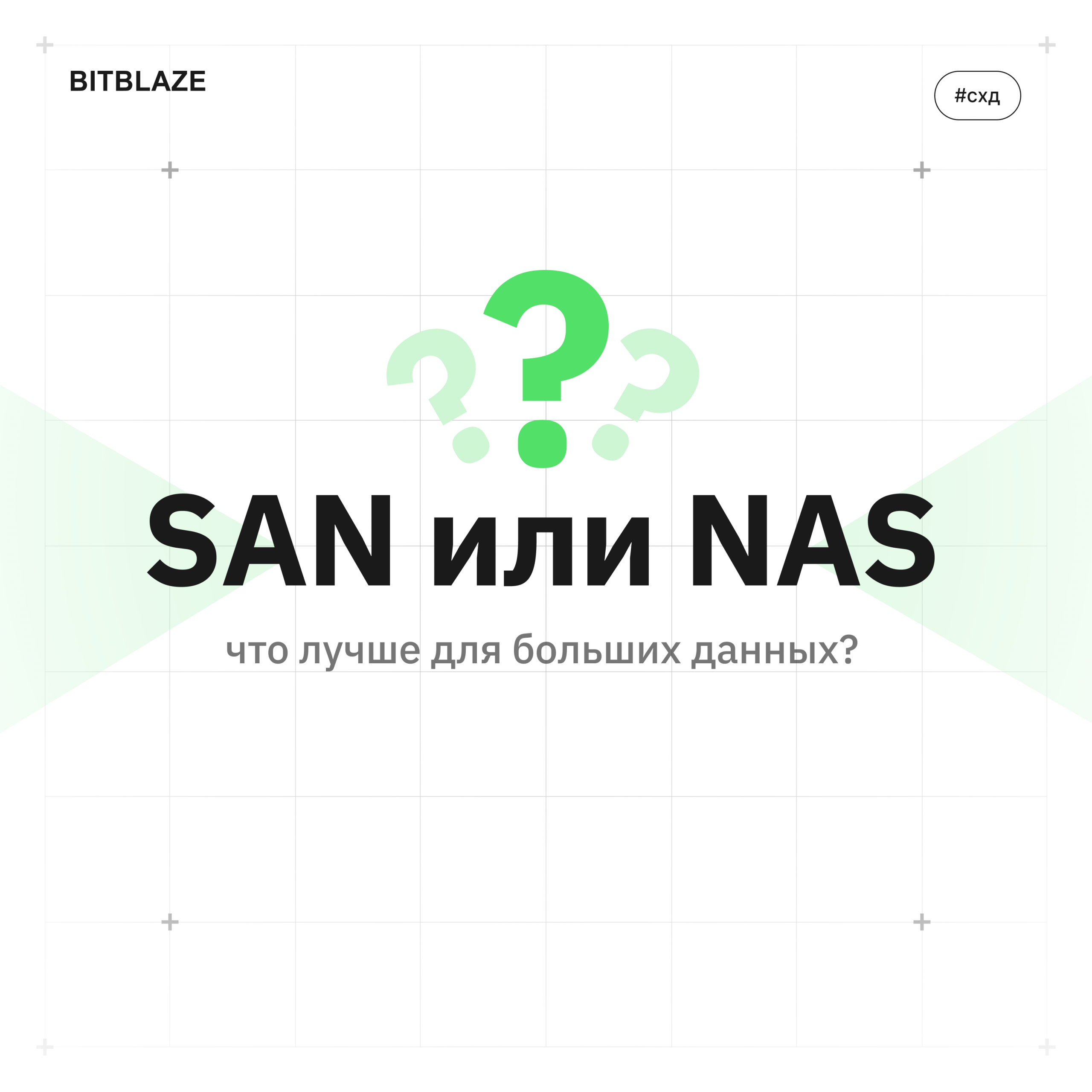 К нам часто обращаются: «Дайте NAS!» Давайте разбираться. Термины SAN и NAS – это зарубежные понятия, которые сложно и неоднозначно переводить на русский. В упрощенном виде: NAS обеспечивает файловый доступ непосредственно к СХД по протоколам вроде NFS или SMB, а SAN – блочный доступ через специализированную сеть данных (протоколы iSCSI, Fibre Channel).